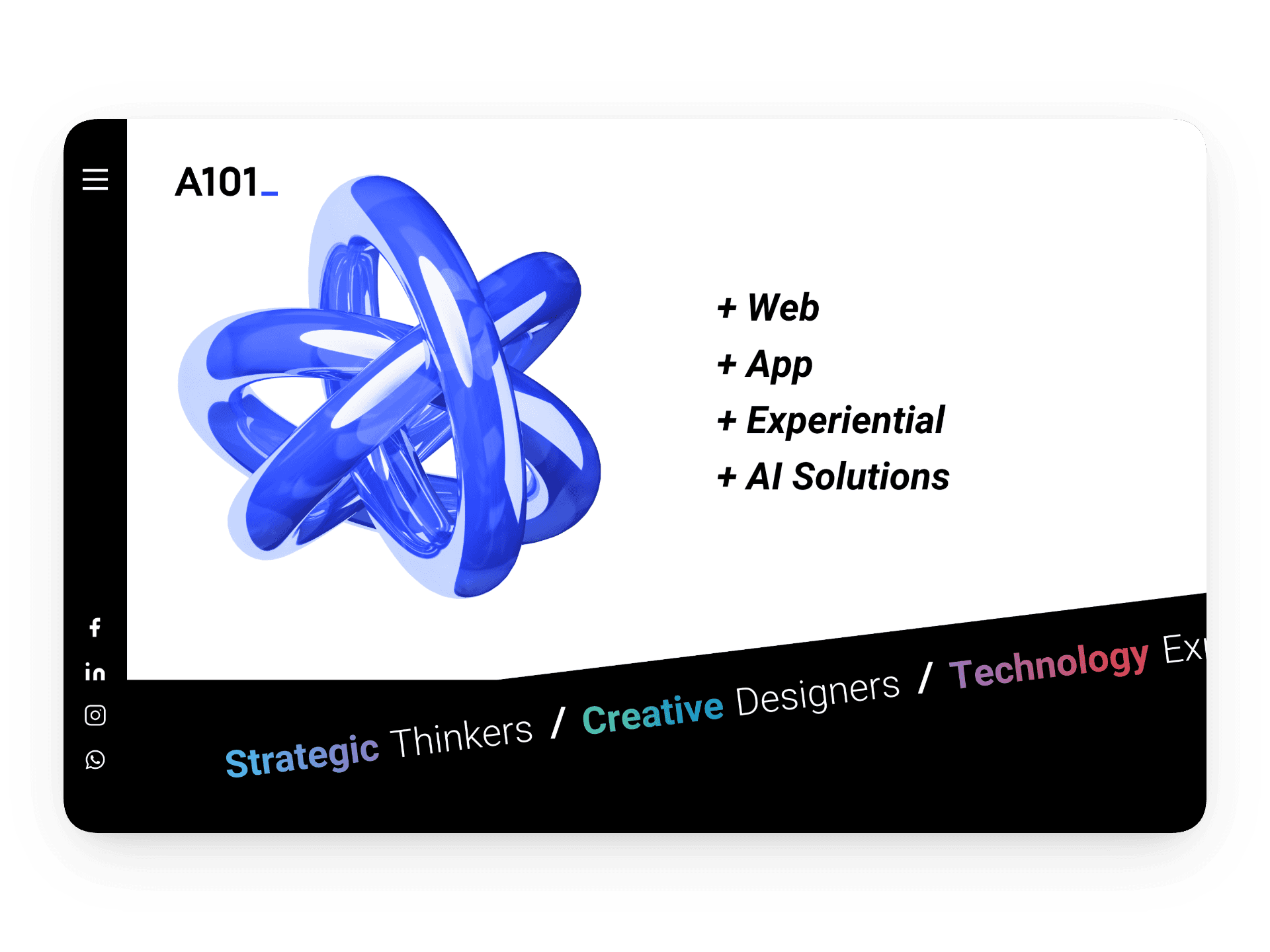 An agency website is never neutral. It either reinforces credibility or quietly erodes it. For A101, the digital presence needed to function as a living demonstration of how the agency thinks, designs, and executes. The interface itself had to communicate confidence, precision, and creative maturity without relying on exaggerated claims or visual noise.